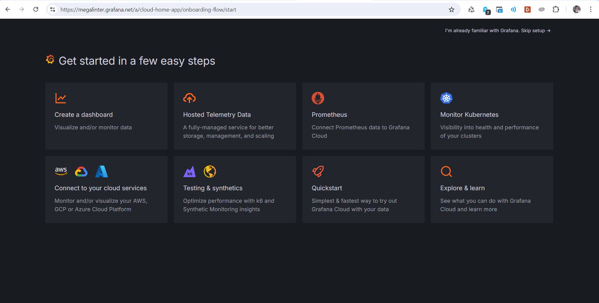 If you don't have a Grafana server, you can use Grafana Cloud Free Tier (14 days of logs & metrics retention + 3 users, no credit card required, free forever)
