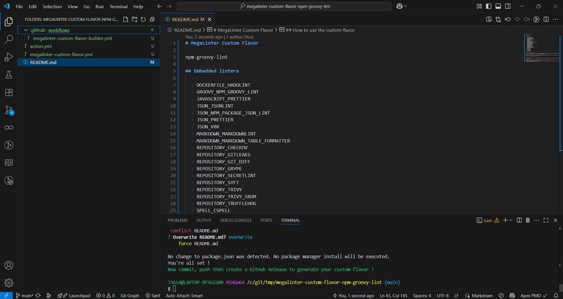 megalinter-custom-flavor(example:megalinter-custom-flavor-npm-groovy-lint), with default README checked.