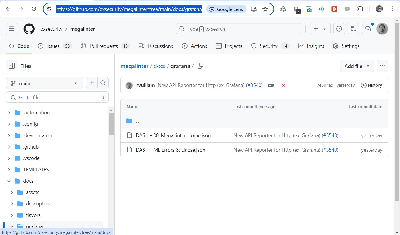 Download all MegaLinter Dashboard JSON files from this MegaLinter repo folder