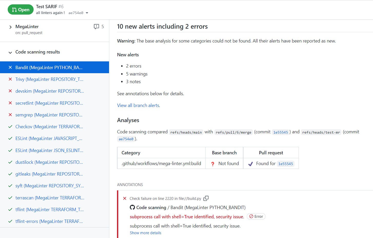 Note: Only linters able to handle SARIF will provide output in the aggregated SARIF file.