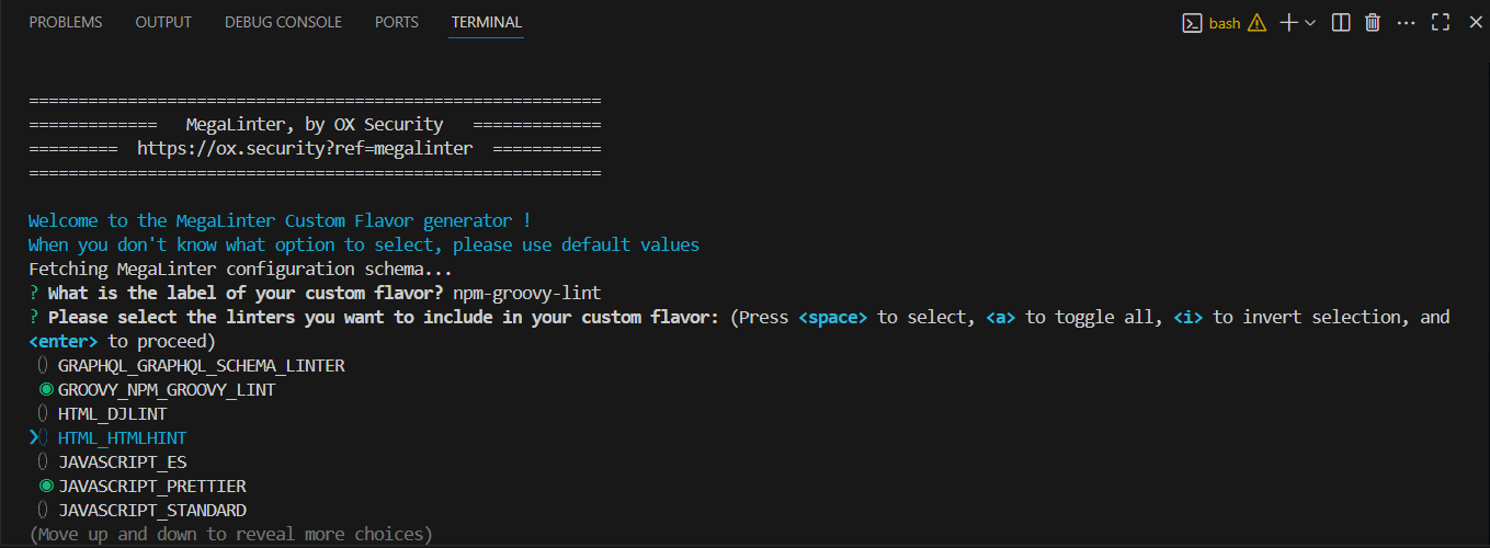 npx mega-linter-runner@beta --custom-flavor-setup