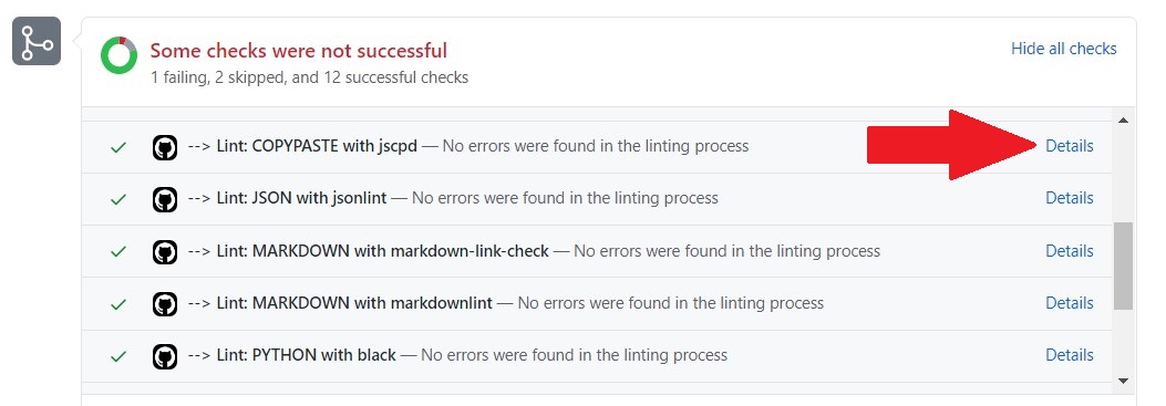 Posts a status on the pull request for each processed linter