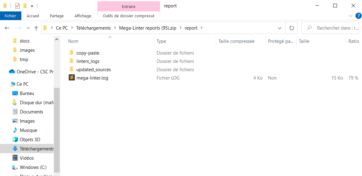 • Open the downloaded zip file and browse linters_logs folder for reports