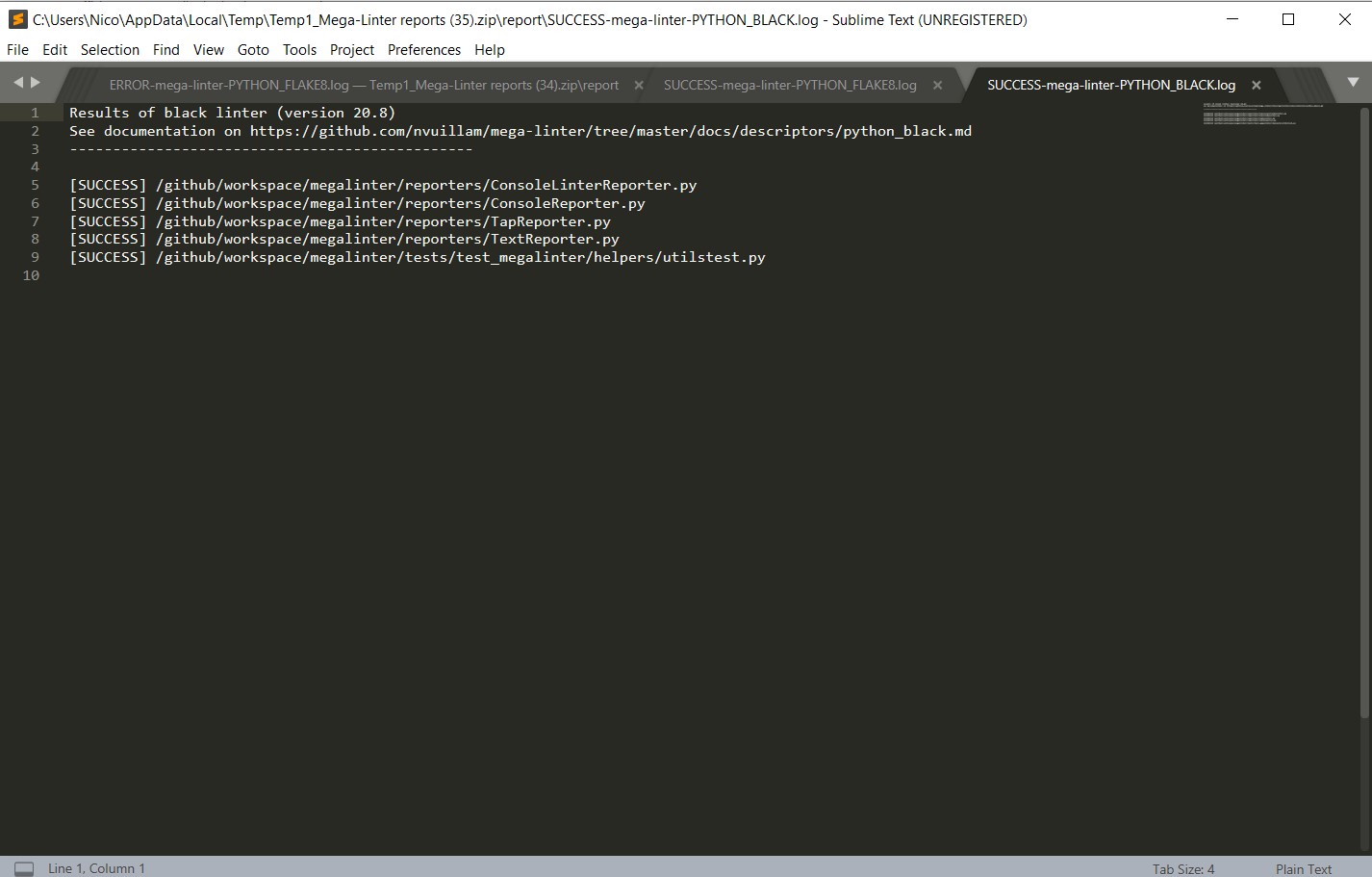 • General execution log mega-linter.log (same as ConsoleReporter log)